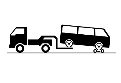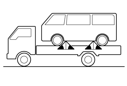 けん引は、できるだけトヨタ販売店または専門業者にご依頼ください。その場合は、レッカー車または、車両運搬車を使用することをおすすめします。