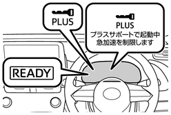 “プラスサポートで起動中 急加速を制限します”というメッセージが表示され、プラスサポート表示灯が点灯したことを確認する