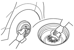 に挿入してください。傷が付くのを防ぐため、ホイールナットレンチの先端に布などを巻いて保護してください。