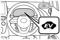 ガソリンエンジン停止中や、電気モーターのみで走行しているときに、EVインジケーターが点灯します。
