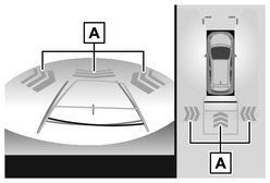 車両後退時、リヤカメラが後方の歩行者を検知すると、ブザーとマルチメディア画面上の表示により注意喚起を行います。