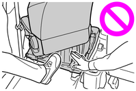 助手席ターンチルトシート格納スペースに手や足を入れないでください。シート可動部などで手や足などを挟むおそれがあります。