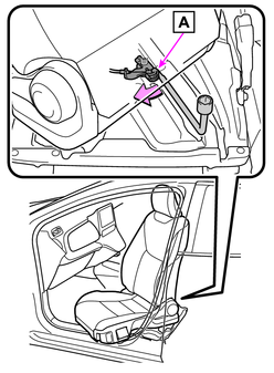 や金属の固い棒などを使用して助手席ターンチルトシート下の回転用ロックを解除する