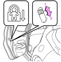 お子さまが車内からリヤ席ドアを開けられないようにできます。両側のリヤ席ドアを施錠側にしてください。