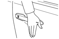フロント席ドアハンドル表面のロックセンサー部(ハンドルのくぼみ部)にふれ施錠する