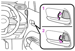 走行中はドア内側のドアレバーを引かない。特に、運転席はロックレバーが施錠側になっていてもドアが開くため、注意してください。