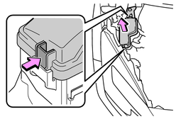ヒューズボックスのカバーを取りはずすときや、取り付けるときはツメを押してください。