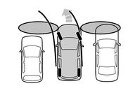 下図の場合、前進しても左側にある車両を検知できないため、巻き込み防止警報機能は作動しません。