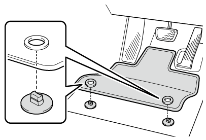 フロアマットがすべての固定フック(クリップ)で正しい位置にしっかりと固定されていることを定期的に確認し、特に洗車後は必ず確認を行う