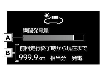 走行中以外の車両状態も含む。詳細についてはソーラー充電システムについてを参照してください。