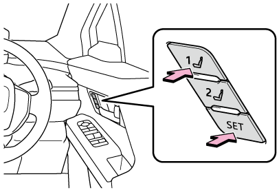 運転席ドアを開けて180秒以内、または運転席ドアを閉めて60秒以内に呼び出したいポジションのボタンを押すと、シートの位置が調整されます。