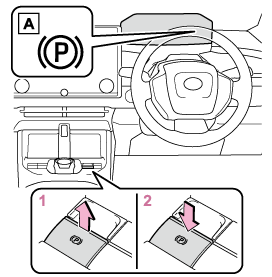 - スイッチを押し、パーキングブレーキを解除する