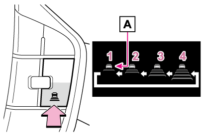 スイッチを押すごとに次のように車間距離を切りかえます。