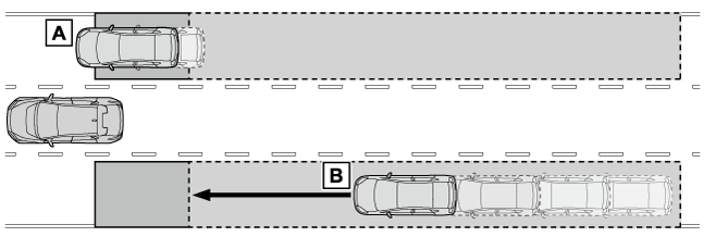 - ドアミラーインジケータードアミラーの死角領域に車両を検知したとき、または後方からその死角領域に急速に接近してくる車両を検知したときは、検知した側のドアミラーインジケーター(→表示灯一覧)が点灯します。検知した側に方向指示レバーを操作している場合は、ドアミラーインジケーターが点滅し、ブザーが鳴ります。