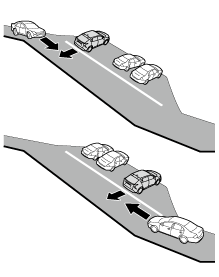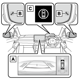- ドアミラーインジケーター自車の右後方または左後方から接近している車両を検知したときは、両側のドアミラーインジケーター(→表示灯一覧)が点滅し、ブザーが鳴ります。
