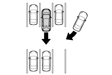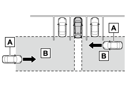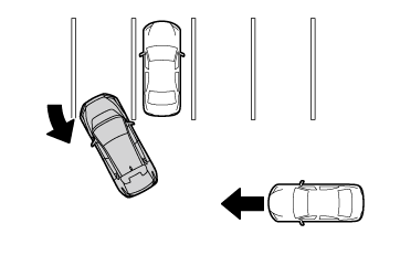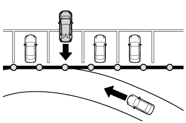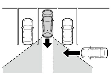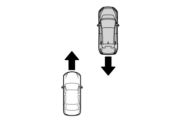 また、自車の右後方または左後方から接近している車両を検知したときは、マルチメディア画面に検知した側のRCTAアイコン(→RCTAアイコンの表示)が点灯します。イラストは両後方から車両が接近している例です。