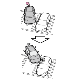 駐車時や低速走行時において、壁などの静止物への衝突のおそれがあるときや、アクセルペダルの踏み間違いや踏みすぎによる急発進、および、シフトポジション選択を誤っての発進時に、センサーが前後進行方向の静止物を検知するとシステムが作動し、衝突を緩和し衝突被害低減に寄与します。
