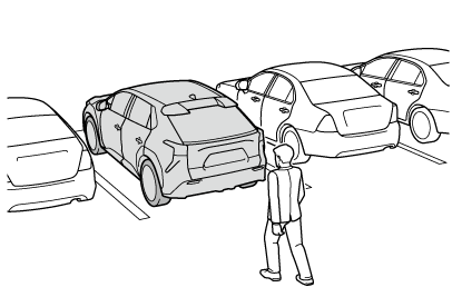 パーキングサポートブレーキ(後方歩行者)の検知範囲は、RCDの検知範囲(→歩行者を検知した場合)とは異なります。そのため、RCDが後方歩行者との接近をお知らせしても、パーキングサポートブレーキ(後方歩行者)は作動を開始していない場合があります。