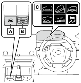 SNOW・DIRTモードまたは、DEEP SNOW・MUDモードを選択した状態で、グリップコントロールスイッチを押し下げます。