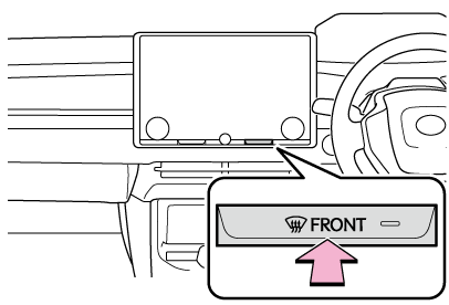 外気の湿度が非常に高いときにエアコンを低い設定温度で作動させているときは、フロントデフロスタースイッチを押さないでください。外気とガラスの温度差でガラスの外側が曇り、視界をさまたげる場合があります。