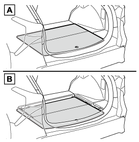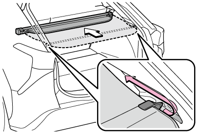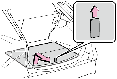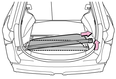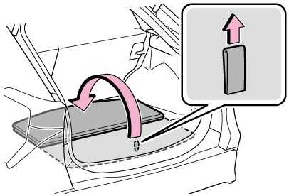 ストラップを引き上げ、車両前方に向けてデッキボードを折りたたむ