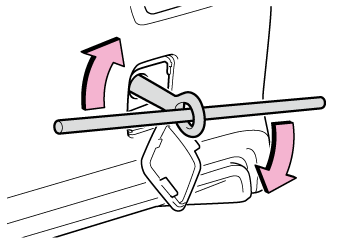 車両運搬車で輸送するときは、タイヤ固縛ベルトを使用します。タイヤの固縛方法は、車両運搬車の取扱説明書を確認してください。運搬中の車両の揺れを抑えるため、パーキングブレーキをかけ、パワースイッチをOFFにしてください。