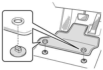 EVシステム停止およびシフトポジションがPの状態で、各ペダルを奥まで踏み込み、フロアマットと干渉しないことを確認する