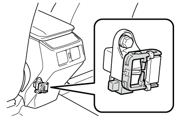 サービスプラグがコンソールボックス下に設置してあります。サービスプラグは絶対にさわらないでください。サービスプラグは、トヨタ販売店での車両の修理時などに、駆動用電池の高電圧を遮断するためのものです。
