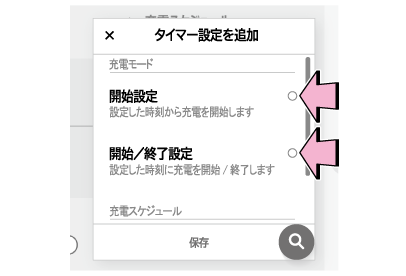 充電スケジュールの登録時には、次の各機能の設定が可能です。
