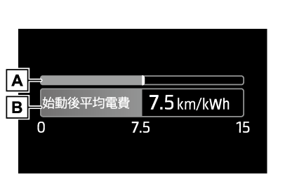 を長押しします。EVシステム始動後の平均電費を表示します。