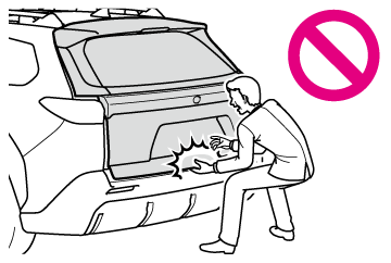 不意にパワーバックドアが動いたり、閉めるときに手・腕・頭・首などを挟んだりするおそれがあります。