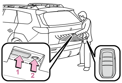 パワーバックドア施錠時:電子キーを携帯して、バックドアオープンスイッチを長押しする