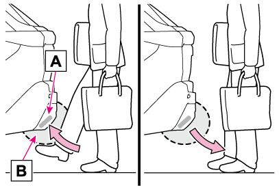 キックセンサーを使用して開閉するときは、パワースイッチがOFF、かつキックセンサーの作動のカスタマイズ設定がON で、電子キーを携帯していることを確認してください。