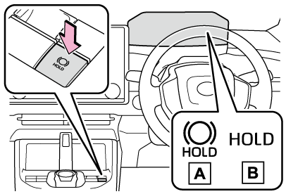 ブレーキホールドシステムの作動条件を満たしているときに、ブレーキホールドスイッチを押してもブレーキホールドスタンバイ表示灯(緑)が点灯しないときはシステムの異常が考えられます。ただちにトヨタ販売店で点検を受けてください。