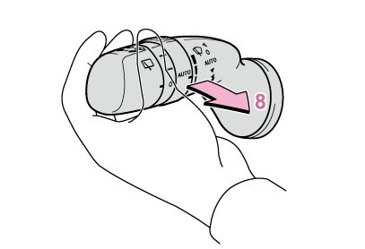 が選択されているときは、次のようにツマミをまわして、雨滴センサーの感度を調整できます。
