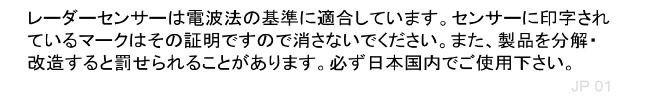 お守りいただかないと、レーダーが正常に作動せず、思わぬ事故につながり、重大な傷害におよぶか、最悪の場合死亡につながるおそれがあります。