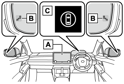 - 運転支援情報表示灯ブラインドスポットモニターがOFFのときに点灯し、マルチインフォメーションディスプレイにメッセージが表示されます。