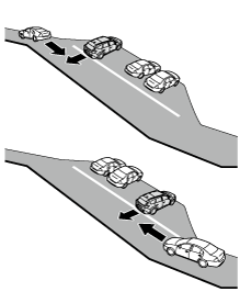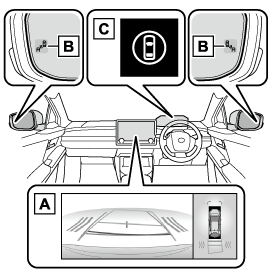 - ドアミラーインジケーター自車の右後方または左後方から接近している車両を検知したときは、両側のドアミラーインジケーター(→表示灯一覧)が点滅し、ブザーが鳴ります。