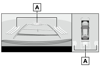 車両後方エリアに歩行者がいる場合や、車両後方に向かって歩行者が接近してくるのをリヤカメラが検知した場合、下記のようにブザーとマルチメディア画面の歩行者検知表示で運転者に注意を促します。