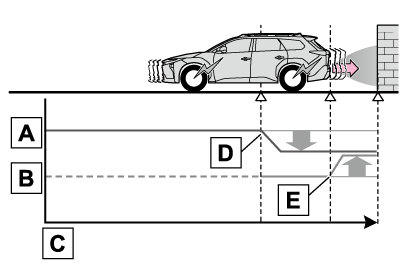 PKSB(パーキングサポートブレーキ)は、完全に車両を停止させるシステムではありません。また、車両を停止させることができたとしても、ブレーキ制御は約2秒で解除されるため、すぐにブレーキペダルを踏んでください。