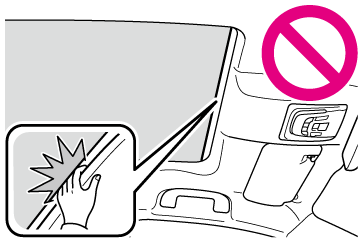 ルーフの下側と電動サンシェードのすき間にはふれないでください。