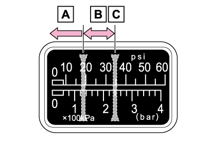 空気圧を確認してください。130kPa(1.3kg/cm2)未満の場合は、タイヤが大きなダメージを受けている可能性があります。