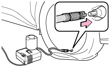 空気充填後は、ホースを取りはずすときや空気を抜くときにパンク補修液が飛散する場合があります。