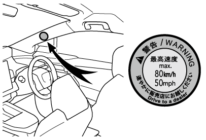 速度制限シールは指定位置以外に貼らないでください。ハンドルのパッド部分などのSRSエアバッグ展開部に貼ると、SRSエアバッグが正常に作動しなくなるおそれがあります。