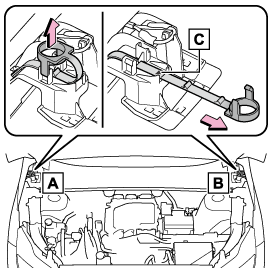 が図の位置になるまでリング部を引くリング部は車両内側方向へ水平に引いてください。解錠操作完了後、リング部を元の位置へ“ カチッ” と音がするまで押し込み固定してください。