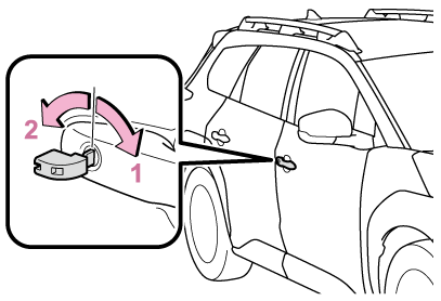 電子キーと車両間の通信がさまたげられたり(→機能が正常に働かないおそれのある状況)、電子キーの電池が切れたときは、スマートエントリー&スタートシステムとワイヤレスリモコンが使用できなくなります。このような場合、次の手順でドアを開けたり、EVシステムを始動したりすることができます。