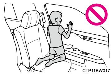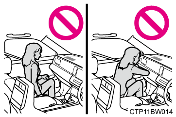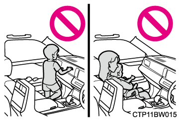 お子さまを助手席SRSエアバッグの前に立たせたり、ひざの上に抱いたりしない