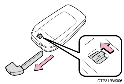 使用後はもとにもどし、電子キーと一緒に携帯してください。電子キーの電池が切れたときやスマートエントリー&スタートシステムが正常に作動しないとき、メカニカルキーが必要になります。(→電子キーが正常に働かないときは)