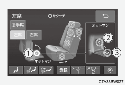 フロント席からもオットマンを格納することができます。(→フロント席からリヤ席を戻すには)