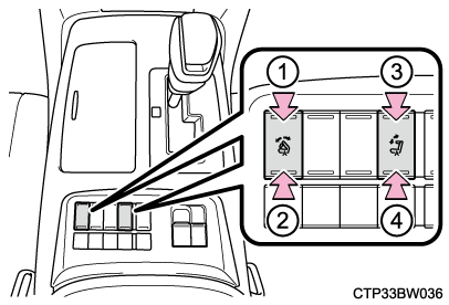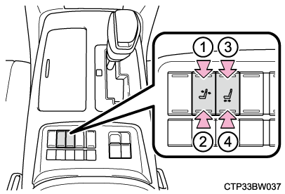 操作するときは助手席の上や足元に作動をさまたげるものがないことを確認してください。シートに無理な力がかかり故障するおそれがあります。